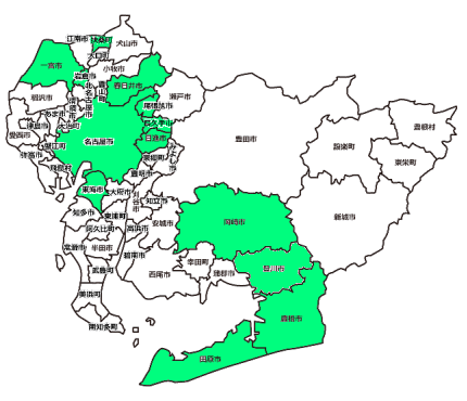 名古屋市・岩倉市・東海市・丹波郡・豊橋市・長久手市・岡崎市・尾張旭市・春日井市・一宮市・田原市・日進市・豊川市